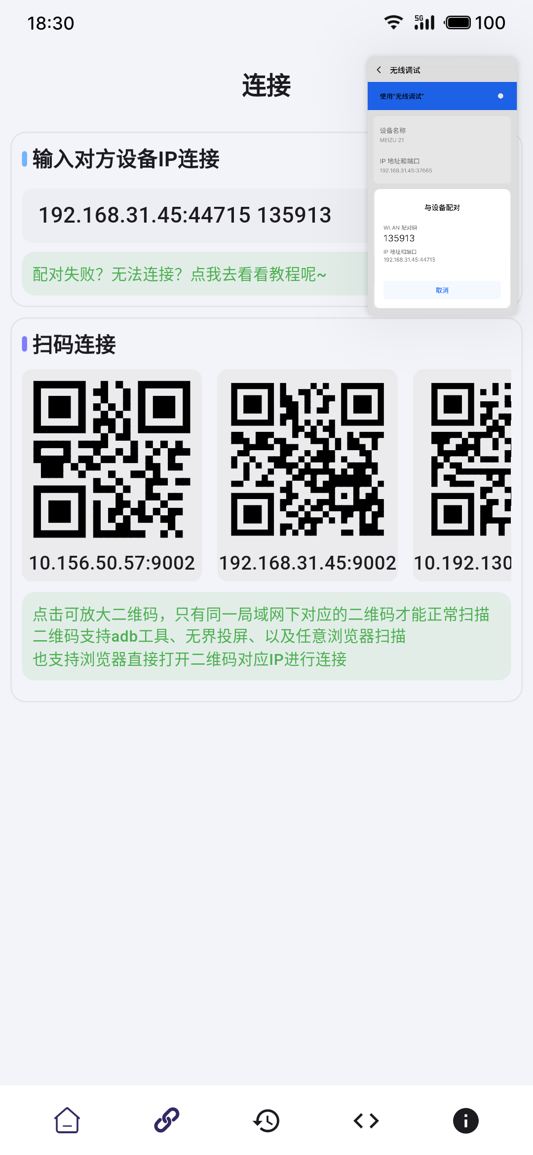 并且无界无法通过这个无线调试的方式自动连接,每次打开 App 都需要手动连接